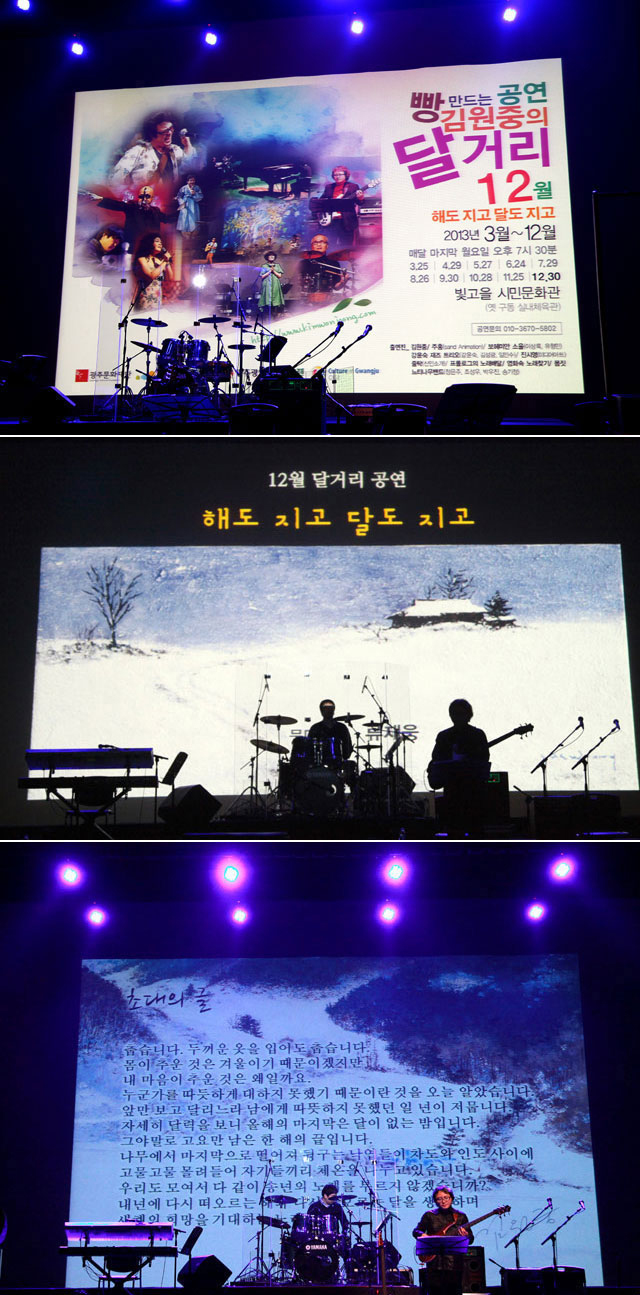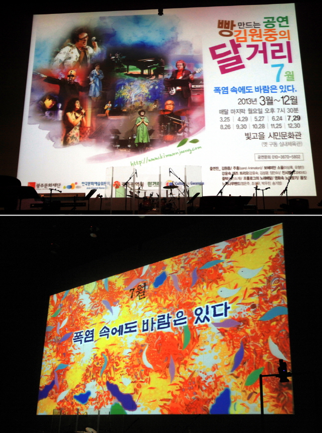 ±¤ÁÖ¿¡´Â ¹«µî»êÀÌ ÀÖ½À´Ï´Ù. ±×¸®°í ¹Ú¹®¿Á°ú ¼Ò¸®¸ð¾Æ°¡ ÀÖ½À´Ï´Ù. ¶Ç ¿ÀÁ¤¹¬(¿Àâ±Ô)ÀÌ ÀÖ½À´Ï´Ù. ¹Ú¹®¿ÁÀº ¡®Á÷³à¿¡°Ô¡¯¸¦ ÀÛ°îÇß°í ¼Ò¸®¸ð¾Æ´Â ¹Ú¹®¿Á°ú ´õºÒ¾î ±¤ÁÖÀ½¾ÇÀÇ ±ê¹ßÀ» µé¾úÀ¸¸ç ¿ÀÁ¤¹¬Àº ½Ê¿© ³â Àü ÃâÇâ ÇÒ ¶§±îÁö ±¤ÁÖ¿¡¼ »ì¾Ò´ø ±¤´ëÀÔ´Ï´Ù. ÀÌ »ç¶÷µéÀº ¹«µî»ê°ú ´õºÒ¾î À½¾ÇÀÇ ±æÀ» °¡°í ÀÖ´Â ÀúÀÇ ¸àÅäÀÔ´Ï´Ù. 11¿ù ´Þ°Å¸®´Â ÀÌ ¸àÅä µé°ú ÇÔ²² ²Ù¹Ì·Á ÇÕ´Ï´Ù. ÇöÀç ÁøÇàÇüÀÌ¸é¼ Àü¼³ÀÌ µÇ¾î¹ö¸° ¾ÆÆ¼½ºÆ®µéÀÇ ¹«´ë¿¡ ¿©·¯ºÐÀ» ÃÊ´ëÇÕ´Ï´Ù. ÀÌ ¹«´ë¸¦ À§ÇØ ÀÚ¸®¸¦ ¾çº¸ÇØÁֽбâÁ¸ÀÇ Ã⿬Áø °À±¼÷ÀçÁîÆ®¸®¿À, ÁÖÈ«, ÇÁ·Ñ·Î±×, Áø½Ã¿µ´Ô²² °¨»çµå¸³´Ï´Ù. ÀÌ´ÞÀÇ ÀÛ°¡´Â Ȱ¡ ¹Ú¼±ÁÖÀÔ´Ï´Ù. Àå¼Ò´Â ºû°íÀ» ½Ã¹Î¹®È°ü ½Ã°£Àº 7½Ã 30ºÐÀÔ´Ï´Ù.